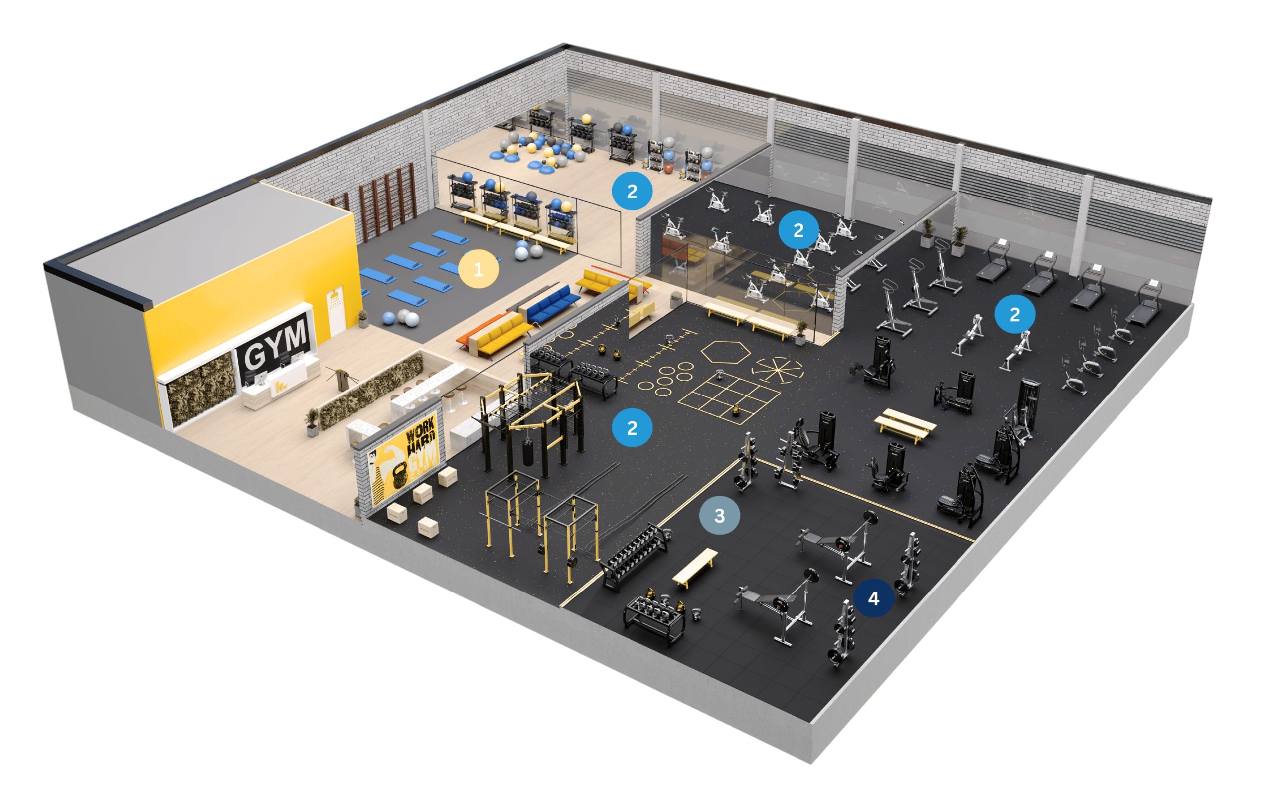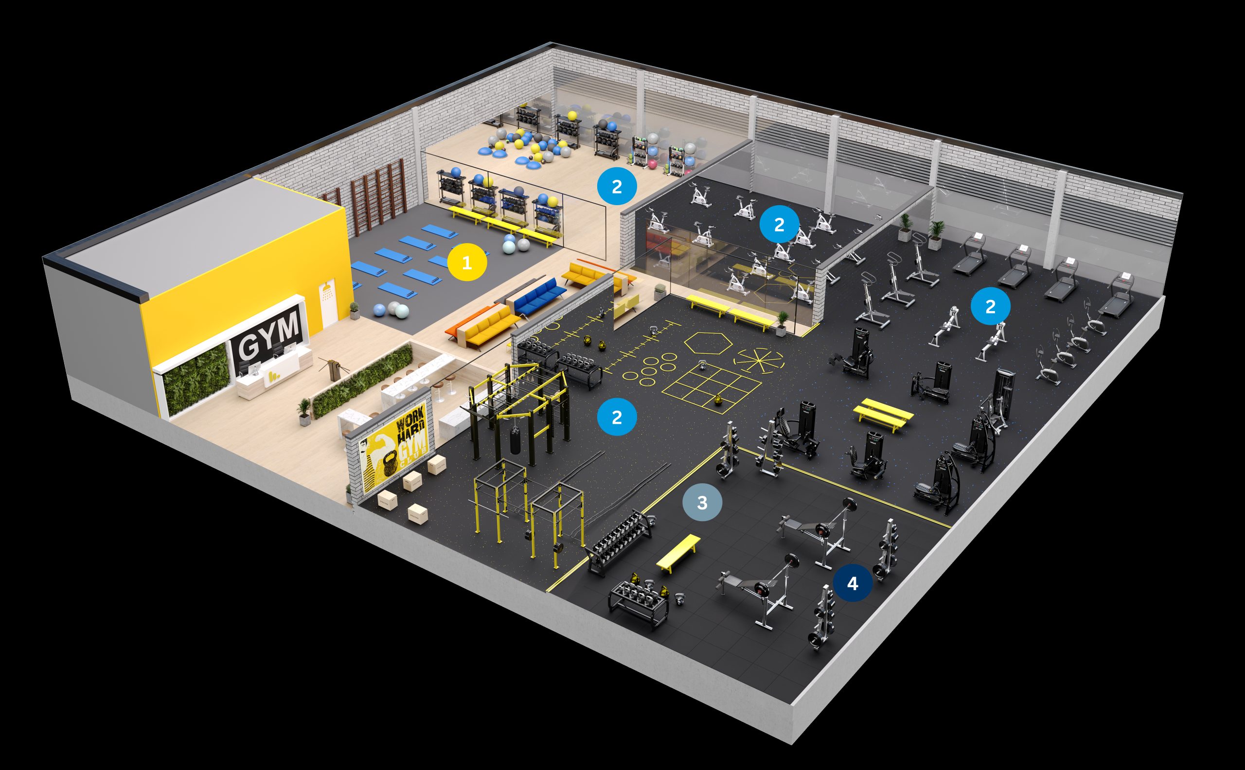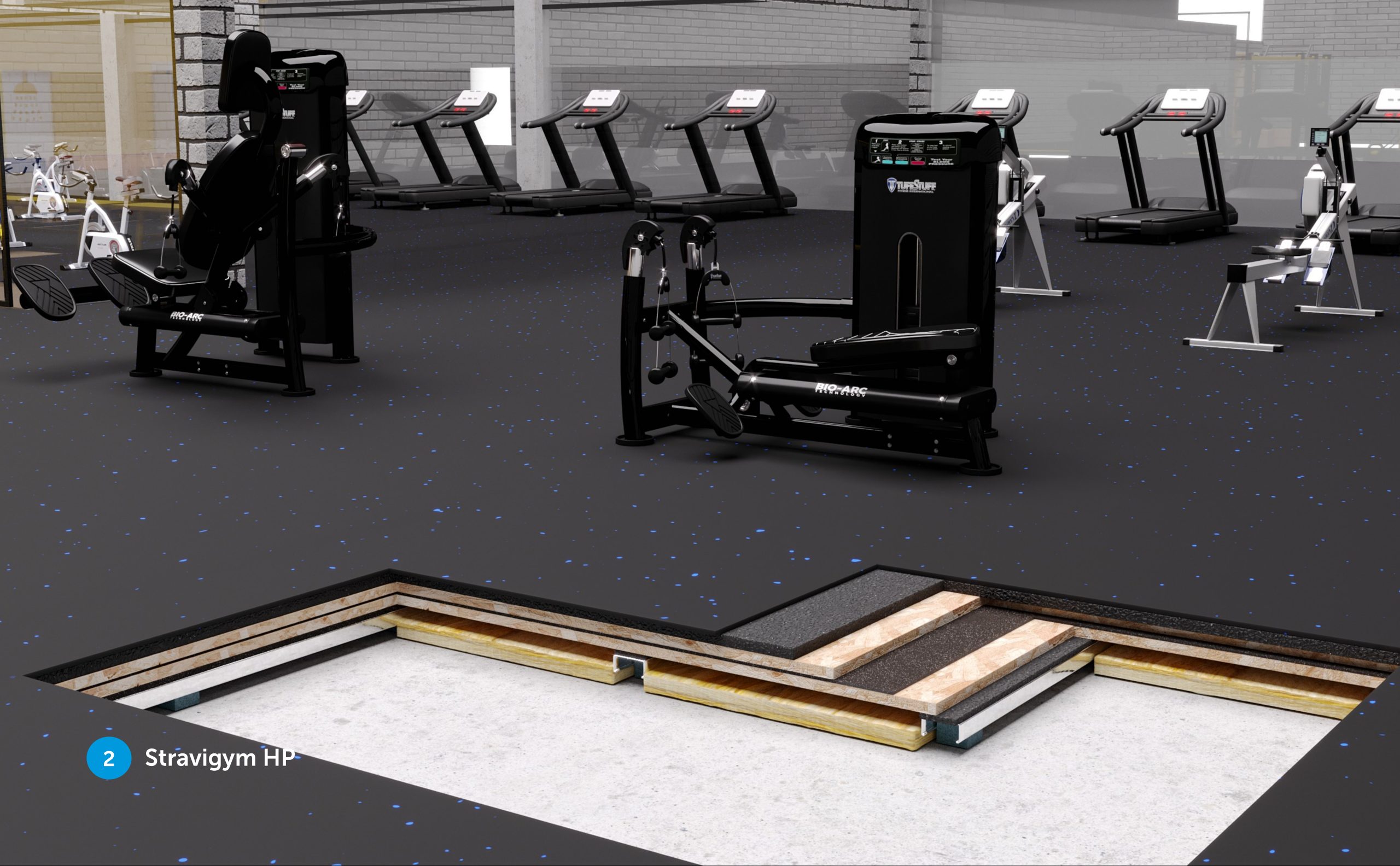 Para responder aos desafios específicos do setor do fitness, desenvolvemos a gama Stravigym – soluções de pavimentos acústicos dedicadas a ginásios, baseadas em construção sem betão ou betonilhas e modular. Cada sistema é desenhado à medida das necessidades reais de cada zona do ginásio, garantindo o desempenho necessário, sem sobredimensionamento nem custos desnecessários. As soluções são ajustadas ao tipo de atividade (pesos livres, aulas de grupo, cardio), aos requisitos acústicos e às limitações do edifício (exemplo: capacidade de carga da estrutura).